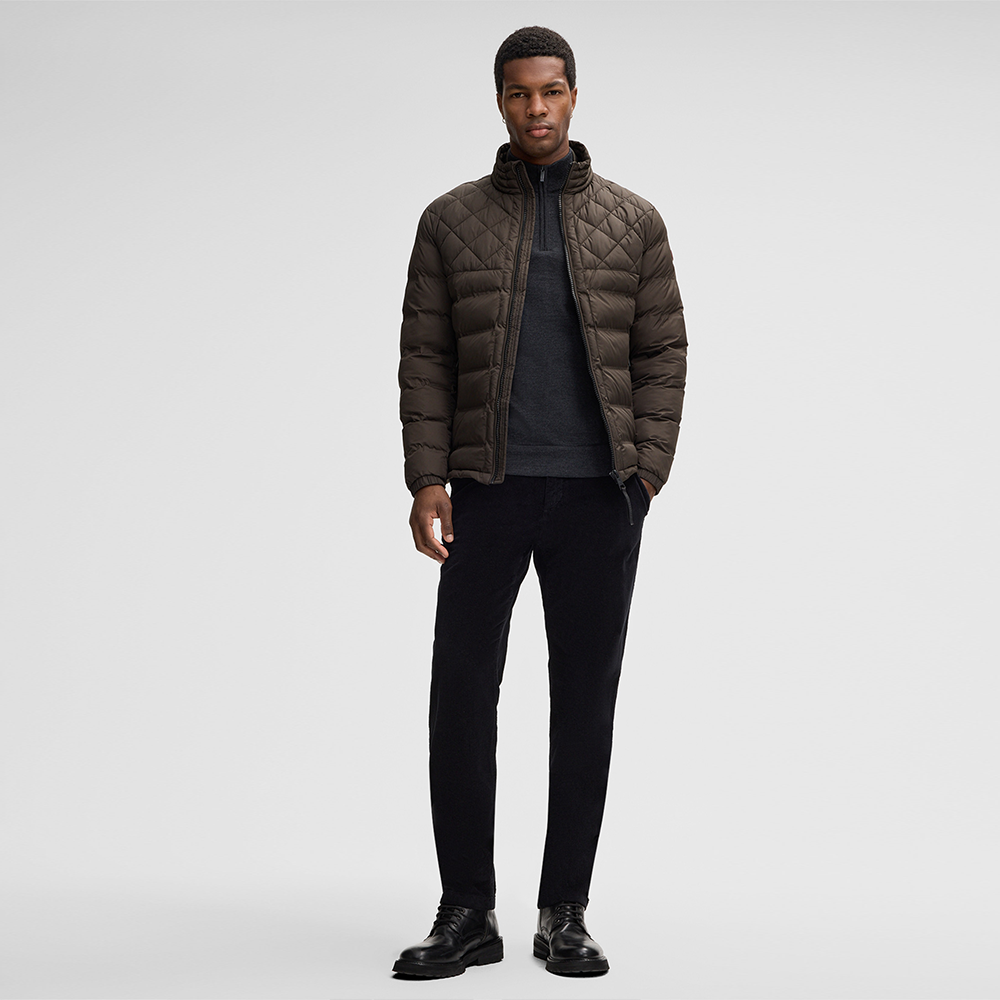 Clason Fused quilted jacket: Stand-up collar, zipper closure, and variable quilted sections characterize the look.