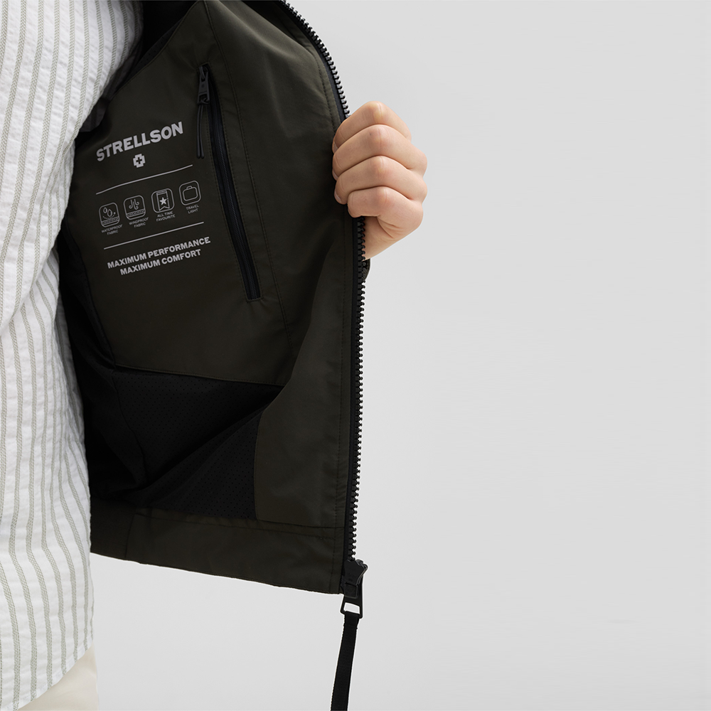 A high-performance item: the windproof and waterproof Lucca jacket boasts partially breathable lining and lightweight technical padding. Comfortable press stud tabs on the sleeves.